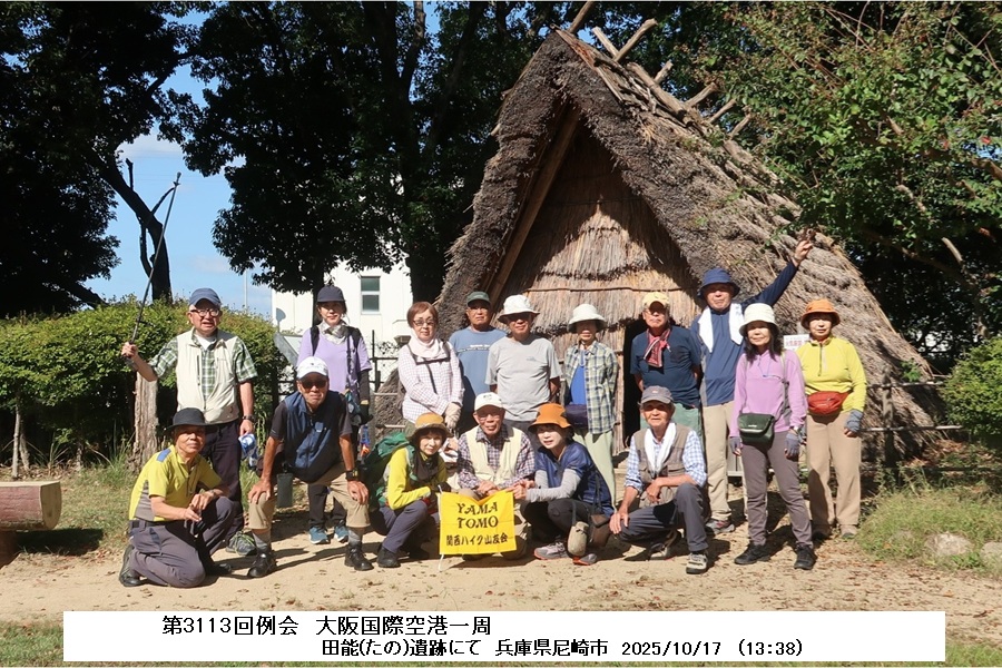 行程:大阪空港駅10:00~05(大阪モノレール)千里川沿11:10―飛行機降下見学場所11:25~40―田能遺跡11:50(昼食)13:30―伊丹スカイパーク14:10~30―エアフロント・オアシス下河原15:45~16:00