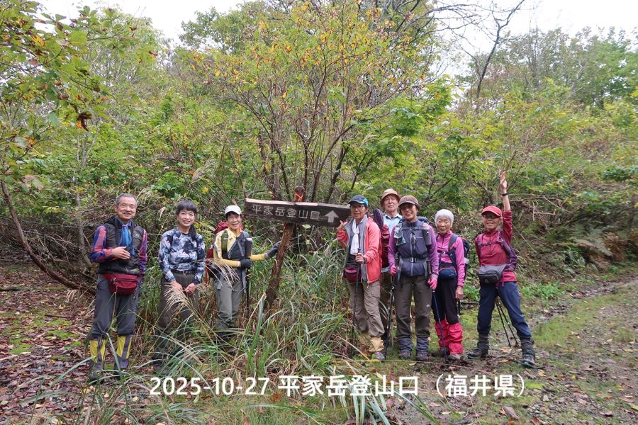【10/27・曇のち小雨】民宿ひおき7:15(車)福井県大野市・面谷鉱山駐車場8:45―登山口9:15―尾根道分岐11:00~05