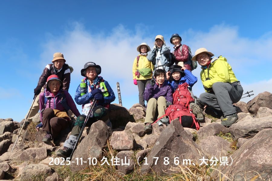 【11/10・晴】民宿”なか”8:20(車)(車)牧野戸峠登山口8:45~9:00―沓掛山9:40―久住別トイレ11:20―久住山山頂