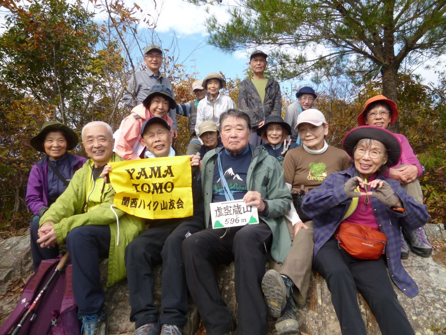 ◆絶好の登山日和。登山口で熊対策のクラッカーを二発鳴らして出発。聖徳太子の創建だという虚空蔵堂を過ぎ、丹波岩までは急な登り。そこを登りきると六甲や北摂の山々が一望できる虚空蔵山山頂。山頂は15名が食事をするには少し狭い。下りは、一部、八王子山分岐からのトラバースを除き急な斜面が続く。露岩のある急な斜面に三か所ほどロープを張る。皆さん健脚でスムーズに下山。熊に出会わず下山できてホッとしました。