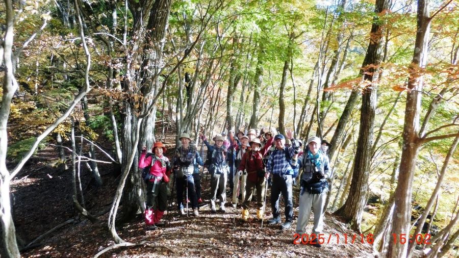 ◆後藤例会の定番のお楽しみ山行、素晴らしい紅葉ルートを一年ぶりに訪れました。快晴の青空に紅葉が映えて、皆さんの歓声があがり、昼食地のごっちゃん平では、お鍋にコーヒー店が大盛況、後藤例会を懐かしみ楽しむ方、また新しい参加者も加わり賑やかな昼食タイム。急降下の尾根ではザイルを張って安全確保して無事に降りました。来年も例会をと、リクエストもあり、くすんだレリーフをきれいにしようという方もいました。