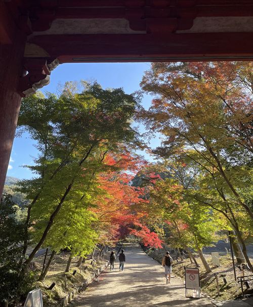 ◆今回も好天に恵まれ好調、仁王門から醍醐寺に入らず南から迂回して女人堂へ、ここから上醍醐へは景色もなく単調な登りが続く、やがて落雷で全焼した准胝堂の札所に着く。再建を祈りながら開山堂へ、高塚山からの下りは雑木林に囲まれているが紅葉したモミジは見られなかった。