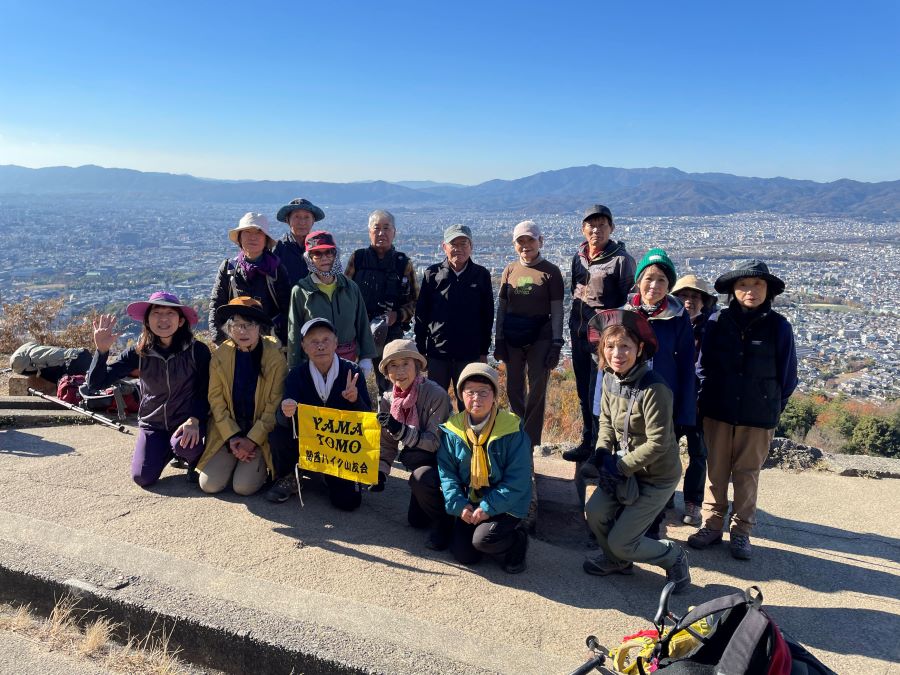 ◆今年最後の例会は快晴の青空、疎水散策は、まだ紅葉が残っていたが、お目当ての山科毘沙門堂は残念ながらすでに落葉した後で紅葉は見られなかった。大文字山は多くの人でにぎわっていた。火床は愛宕山や西山連峰まできれいに見えた。火床からは中尾城跡への裏大文字で、まだ少しは紅葉が残っていた。