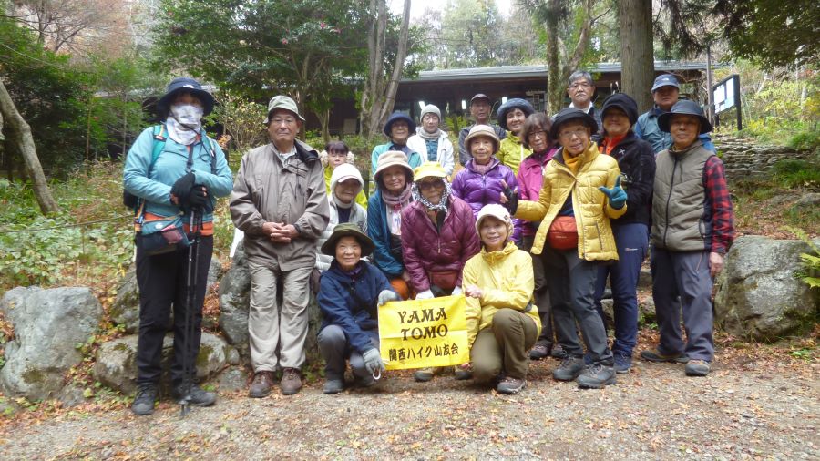◆勝ち運の寺、勝尾寺には外国人が多い。紅葉と勝ちだるまが外国人には人気のようだ。バス停から長い階段を登ると自然観察路⑤が始まる。クマよけのクラッカーを鳴らして出発。箕面の自然観察路は、シイ、カシをはじめクスノキ、ヤブニッケイなどの常緑照葉樹林なので、あまり目だったものはない。しかし唯一、コシアブラの黄葉が驚くほど見事だった。お目当てのカエデの紅葉は箕面大滝の近くに、少しは残ってはいたが時期が遅くて、皆さんをがっかりさせてしまいました。