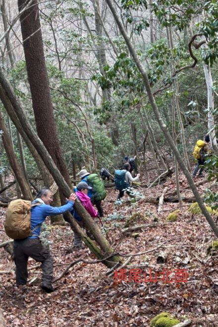 ◆暖かい日差しの中、僅かな凍結は残るものの、山の北面の雪も殆ど無い最高の状態で歩く事が出来た。ひっそり佇む丹州街道浮峠のお地蔵さん、行者山磨崖仏の巨石群、冬枯れの尾根筋の木立の中に深く静まる剣尾山月峯寺跡。優しく静かに出迎えて下さった。今回も健脚の皆さんの協力に助けられて、川の渡渉を嫌ったルート変更の為に生じた踏み跡の無い不安な急斜面の下りも何とか無事に通過出来た。道中は、夕方の急激な冷え込み、下山でのトラブルを想定し、休憩、写真撮影等を最小限にし、先を急ぎ、時間的には予定通り下山出来た。るり渓温泉入浴後、日生中央行き又は園部駅行き温泉送迎バスで帰路に就く。支えて下さった皆さんに深く感謝したい。