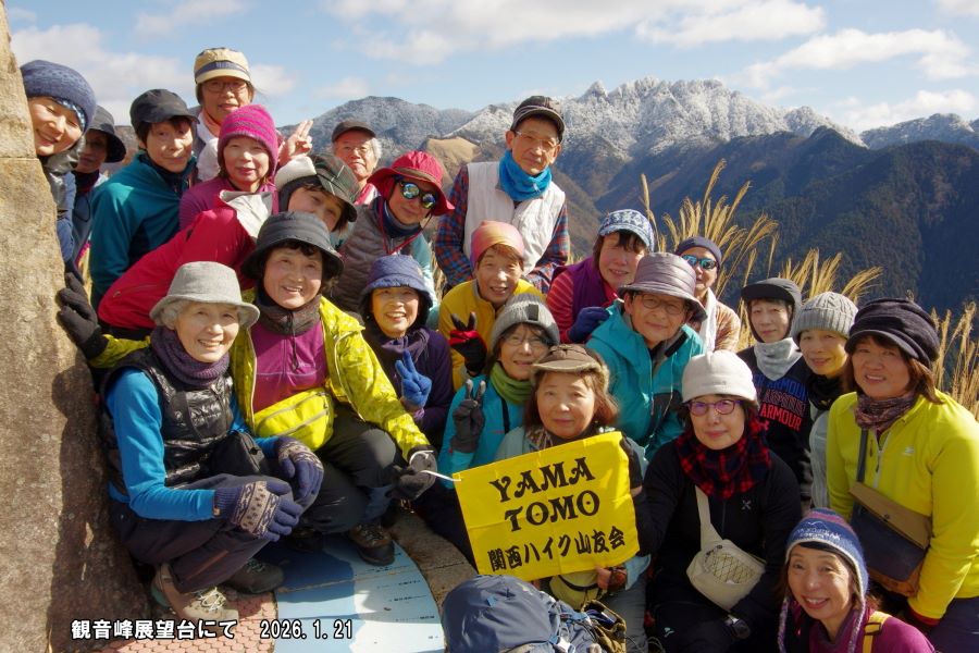 行程:観音峰登山口9:45―第一展望台10:05~15―観音平10:40~50―観音峰展望台11:15~30―観音峰山12:05(昼食)