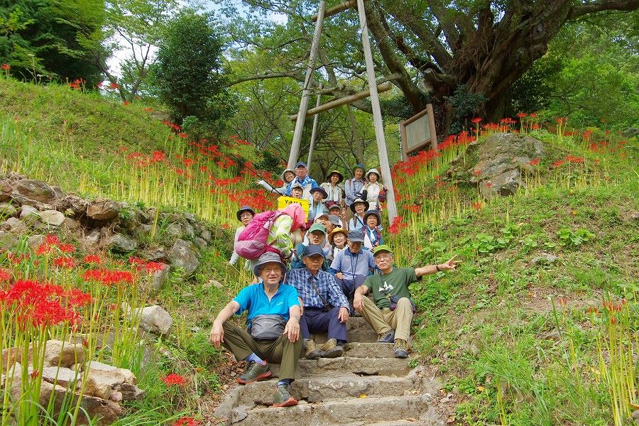 ◆お彼岸には彼岸花。今年は千年桜で名高い仏隆寺へ。周辺の田畑のあぜ道などに彼岸花はゼロ。仏隆寺周辺の彼岸花はイノシシや鹿で壊滅したのをボランティアの人々が千年桜周辺からお寺への階段脇に球根を植栽して復活。見頃だった。あまり知られていない摩崖仏を見に山中へ。彫りの深い大黒天や吉村長慶像、厄除観音像を見学。林道を歩き千体仏へ。常時閉鎖されているお堂は彼岸の日だけ開帳。法要に間に合い大小の地蔵菩薩像をゆっくり鑑賞。事前に宇陀市観光課に連絡していたためか堂を管理する方が待っておられた。お参りから離れるとき管理の方から小餅入りのお下がりを参加者21名全員が頂き予想外のプレゼントだった。津越辻、千本杉から伊勢本街道を高井バス停へ。バス停で解散したがバス発車時間まで1時間以上あり榛原駅へほぼ全員が車道を6km歩いた。皆さん元気です。