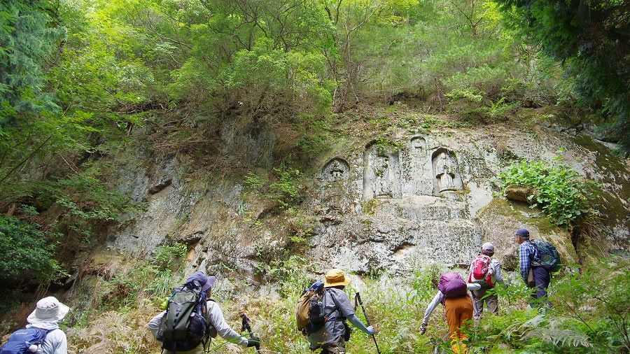行程:榛原駅10:35(バス)高井10:48~55―仏隆寺駐車場11:40(昼食と散策)12:35―厄除観音摩崖仏12:46~55―千体仏13:30~55―津越辻14:03~20―千本杉14:25―高井バス停14:50(解散)