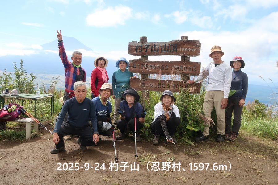 【9/24・晴】宿7:50(車)杓子山駐車場8:50―大ザス峠10:30―杓子山山頂11:45(昼食)12:25―駐車場14:30(車)