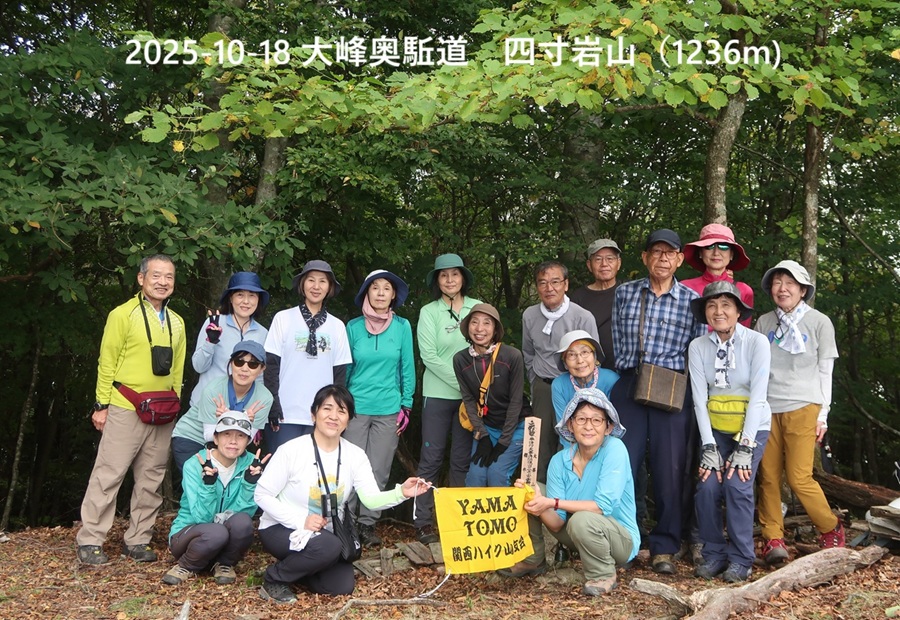 ◆吉野町最高峰の青根ヶ峰からひっそりとした秋の奥千本を眺めながら大峰奥駈道を進む。四寸岩山で弘法トレイルなど吉野の山並をバックに昼食をとり、いよいよ奥駈らしい石灰岩が連なる所へ。五番関の女人結界門前を通り、奥駈道を繋いでいきましょうねと語りながら降りました。