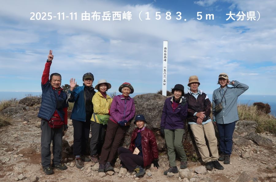 12:30―東西分岐12:30―由布岳西峰山頂13:00―東西分岐13:30―正面登山口15:30(車)新門司港18:20(フェリー)