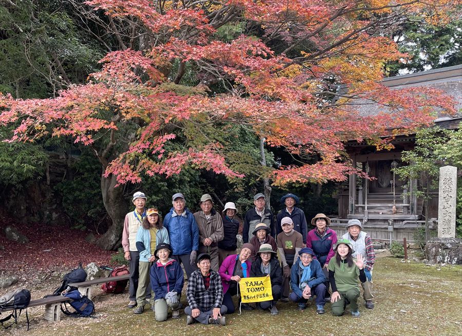 ◆今回も好天に恵まれ好調、仁王門から醍醐寺に入らず南から迂回して女人堂へ、ここから上醍醐へは景色もなく単調な登りが続く、やがて落雷で全焼した准胝堂の札所に着く。再建を祈りながら開山堂へ、高塚山からの下りは雑木林に囲まれているが紅葉したモミジは見られなかった。