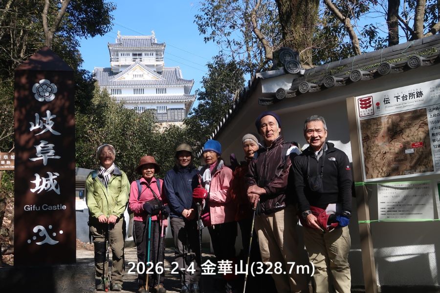 行程:米原駅8:10(車)岐阜市岩戸公園駐車場9:30~40―七曲峠東10:05―岩戸山10:20―七曲峠西10:40―金華山山頂11:30
